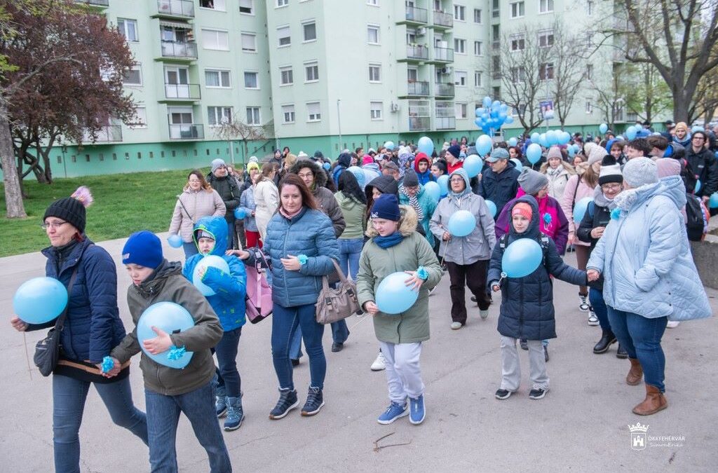 Több mint kétszázan vettek részt az autizmus világnapjához kapcsolódó Kék sétán, amelyet az Arany János EGYMI Autizmussal élők Intézményegységének pedagógusai szerveztek kedden. A Zöldfa téren kora délután kék lufikkal, papírvirággal és festett, kék kövekkel a kézben indultak el a résztvevők és sétálták körbe iskolájukat, majd énekkel, verssel mutatták meg a diákok tehetségüket.
