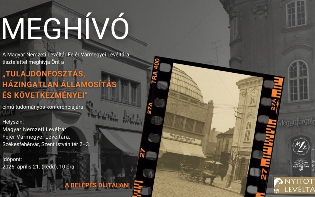 A második világháborút követő időszakban bekövetkezett államosítás lesz a fő témája annak a tudományos konferenciának, amelyet április 21-én, kedden 10 órakor rendeznek meg a Magyar Nemzeti Levéltár Fejér Vármegyei Levéltárában. A „Tulajdonfosztás, házingatlan államosítás és következményei” című eseményen többek között szó lesz a földelvételre irányuló hatalmi technikákról, a műtárgysorstalanságról és a múzeumi felelősségről, valamint a lakhatási konfliktusokról.
