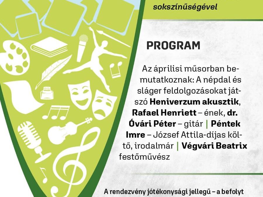 A Heniverzum akusztik koncertjével indul a tavaszi Viktória Pódium. Rafael Henriett és dr. Óvári Péter népdal- és slágerfeldolgozásokkal hangolja jó kedvre a közönséget. A Viktória Rehabilitációs Központ nagytermében április 7-én, kedden 18 órakor kezdődő eseményen Péntek Imre, József Attila-díjas költő irodalmár és Végvári Beatrix festőművész mesél magáról, a művészetről, az alkotói folyamatokról és az alkotás útjáról.